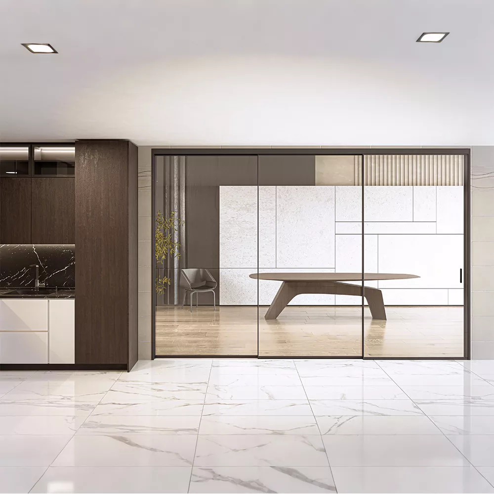 Son derece dar sürgülü kapı, geleneksel sürgülü kapının ağır hissini kırmak için 1,5-2 cm'lik son derece dar kenarlı, alanı daha şeffaf ve açık hale getiren ultra dar çerçeve + minimalist ray tasarımının kullanımını ifade eder. İster küçük bir dairenin kapasitesini genişletmek, ister büyük bir dairede lüks duygusunu arttırmak olsun, "görünmez sınır" şeklinde fonksiyon ve estetik arasında mükemmel bir denge yakalayabilir.